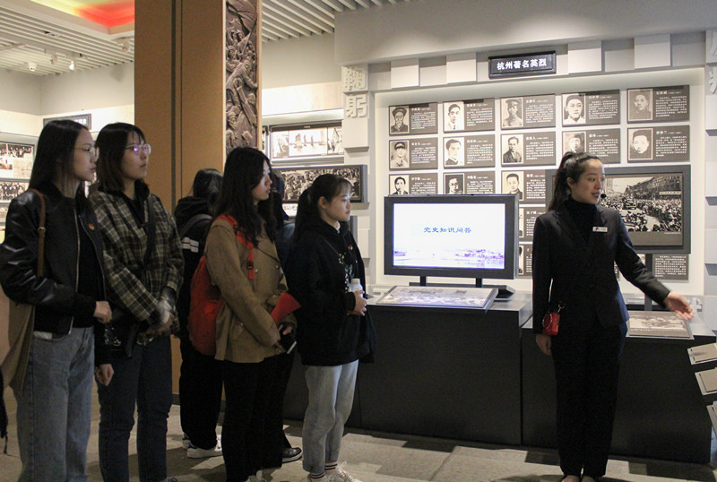 最后,同学们参观中国共产党杭州历史馆。随着宣教员的生动讲解,同学们认真聆听中国共产党杭州地方党组织带领全市人民从血雨腥风的革命岁月、激情燃烧的建设时期、波澜壮阔的改革年代一路走来并创造灿烂辉煌的历史。并积极在互动平台上参加关于中国共产党的知识问答。