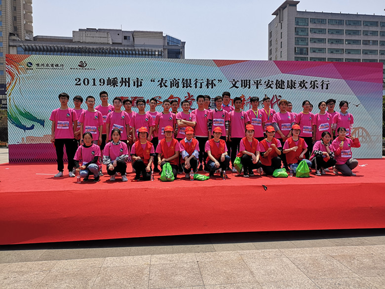活动现场,同学们参与到2019年嵊州市“农商银行杯”文明平安健康欢乐行和“亲青恋”--“燃烧吧,青春!”春季趣味交友运动会的两项志愿服务。在环城毅行期间,志愿者们不畏炎热天气,分组行动,配合主办方完成长达10公里路程的城市垃圾分类、垃圾分类普及,以及发放调查问卷等任务。在春季趣味运动会活动中,志愿者们协助青年,参与到团队素质拓展,包括万里长城永不倒、勇闯指压板、人体蜈蚣等项目。活动现场,志愿者们主动热情,践行团队配合、互帮互助的精神理念,受到主办单位和现场青年的一致好评。